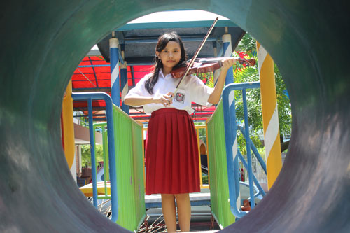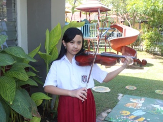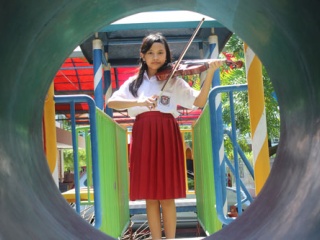 Pada awalnya , ELS Biola bukanlah pilihan yang menarik bagi saya. Saya takut apabila nanti saya tidak mampu menguasai permainan biola. Bahkan pada awalnya saya sendiri mengalami kesulitan memainkan biola dengan benar meskipun bermusik bukanlah pengalaman baru untuk saya. Saya berpikir semua ini adalah tantangan baru yang harus bisa saya lalui, apalagi pengajar kegiatan ELS juga membantu kami dengan sabar setiap kali kami mengalami kesulitan. Orang tua saya juga mendukung saya menekuni kegiatan ELS Biola dengan memberikan motivasi untuk mempelajari instrumen ini. Semua hal tersebut membantu saya merasa lebih nyaman untuk belajar biola. Selama saya berusaha yang terbaik, saya dapat mengembangkan bakat saya.