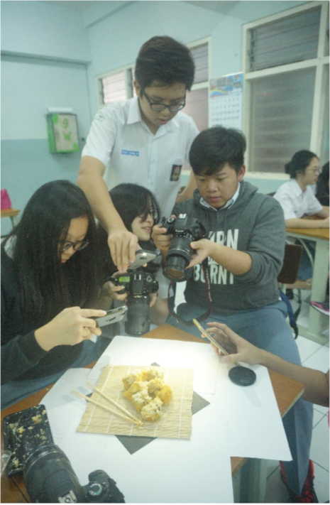 Saat ini para siswa sedang mempelajari materi food photography yaitu materi memfoto objek makanan. Siswa diminta untuk bekerja sama dalam kelompok dan membawa makanan pilihan mereka untuk difoto. Para siswa begitu antusias dalam mengambil angle foto maupun pengaturan lighting. Tujuan dari materi food photography adalah mengajarkan siswa untuk dapat mempromosikan produk makanan sehingga menarik konsumen yang melihat menjadi berminat membeli makanan tersebut.